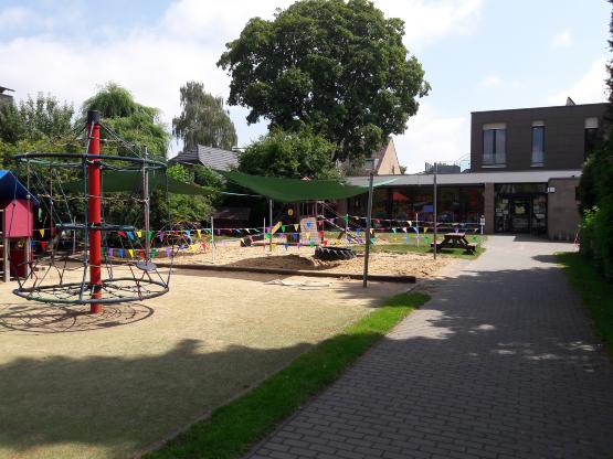 Das Außengelände wurde zum Teil im Frühjahr 2012 erneuert. 2014 kam zum 20-jährigen Jubiläum des Fördervereins ein Spielturm dazu. Die Kinder können draußen klettern, rutschen, schaukeln, im Sand spielen und toben. Zudem verfügen wir über eine Matschanlage.